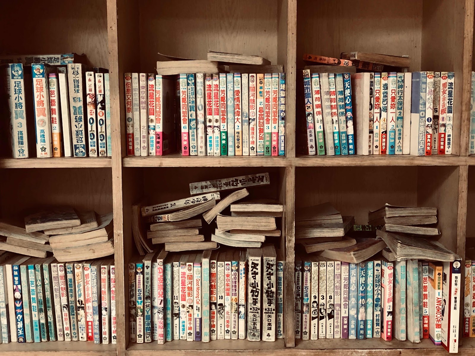 店裡有一個書櫃擺著謝阿姨兒子的漫畫書,給客人隨意翻閱。一套套都是他成長過程時期的作品,我也是看漫畫長大的,所以覺得特別有親切感,阿姨說現在學生都不會來翻漫畫看了,都直接拿手機看,這些舊的擺在這裡等回收吧。